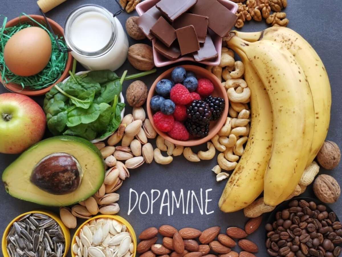 A dopamina é produzida a partir de um aminoácido chamado tirosina, que pode ser obtido através da alimentação. Certos alimentos ricos em proteínas são excelentes fontes de tirosina, como frango, peru, ovos, salmão, atum, queijos, iogurtes, amêndoas, nozes, abacate e banana.