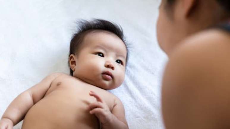 É melhor conversar com os bebês usando uma forma simplificada de falar, caracterizada por sons mais agudos, vogais alongadas e ritmo mais lento, com as palavras apresentadas em uma voz alegre e cantada.