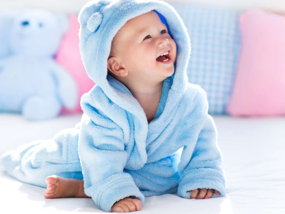 O bebê firma o pescoço, consegue levantar a cabeça e virá-la de um lado para o outro quando está de bruços, sorri quando alguém sorri para ele, emite sons guturais.