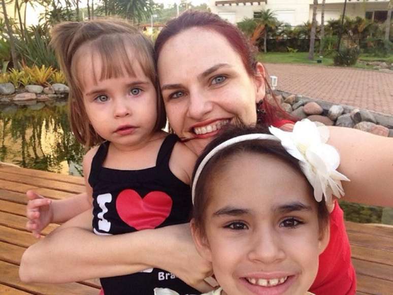 A biomédica Jênyce Carla Reginato da Cunha, com as filhas Maria Clara (à esquerda) e Maria Vitória. A caçula nasceu, também, para salvar a irmã mais velha, por meio de um transplante de medula óssea