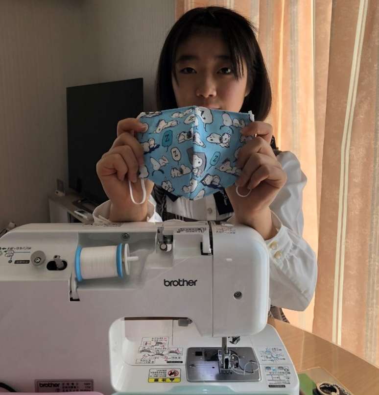 A estudante Hime Takimoto, de 13 anos, resolveu dar sua pequena contribuição. Ao ver pessoas idosas em um loja em Kofu (Província de Yamanashi) atrás de máscaras, a adolescente teve a ideia de costurar ela própria o cobiçado item.