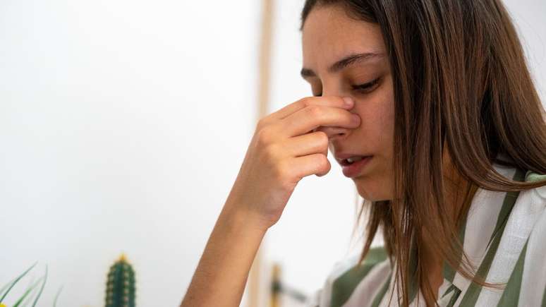 Entre os principais sintomas da presença do desvio do septo, o médico destaca a respiração pela boca, apneia do sono, roncos, cansaço, dores de cabeça e na face e dificuldade para dormir.