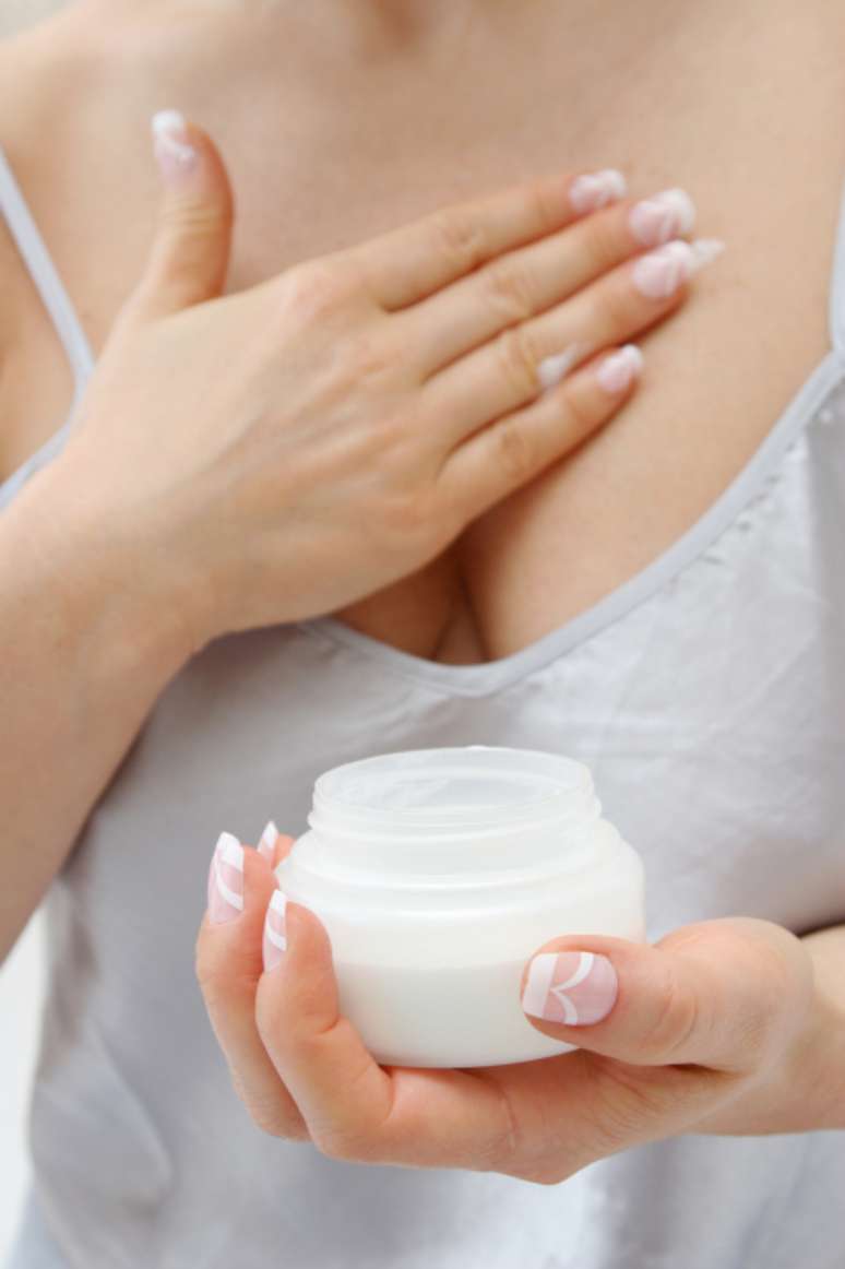 Mulheres que hidratam a pele do corpo todos os dias garantem melhor aparência dos seios no futuro. Ajudam a reduzir o aparecimento de rugas, estrias e manchas em geral.