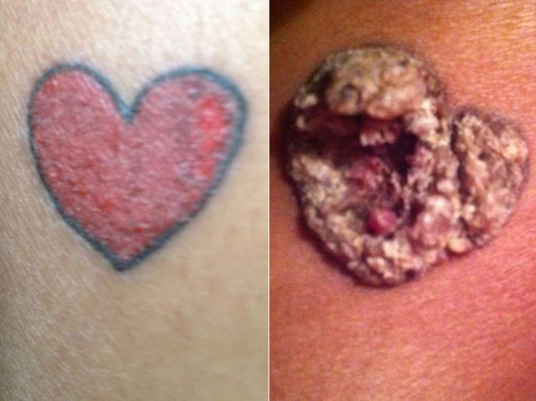 Alérgica à tinta vermelha da tatuagem, ela precisou fazer uma cirurgia para removê-la