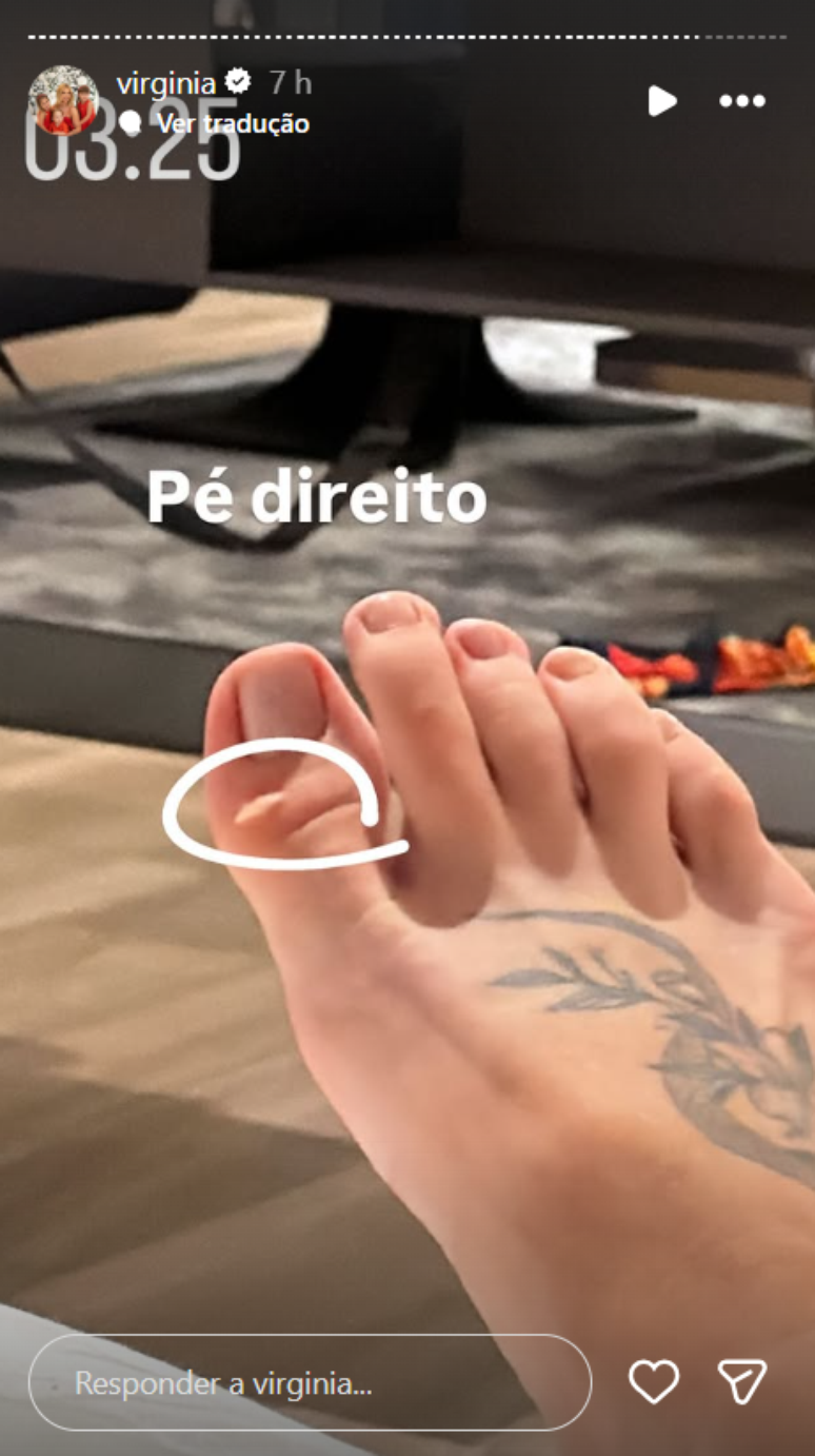 Pé lesionado da Virginia após ensaios. - Foto: Reprodução/Redes Sociais