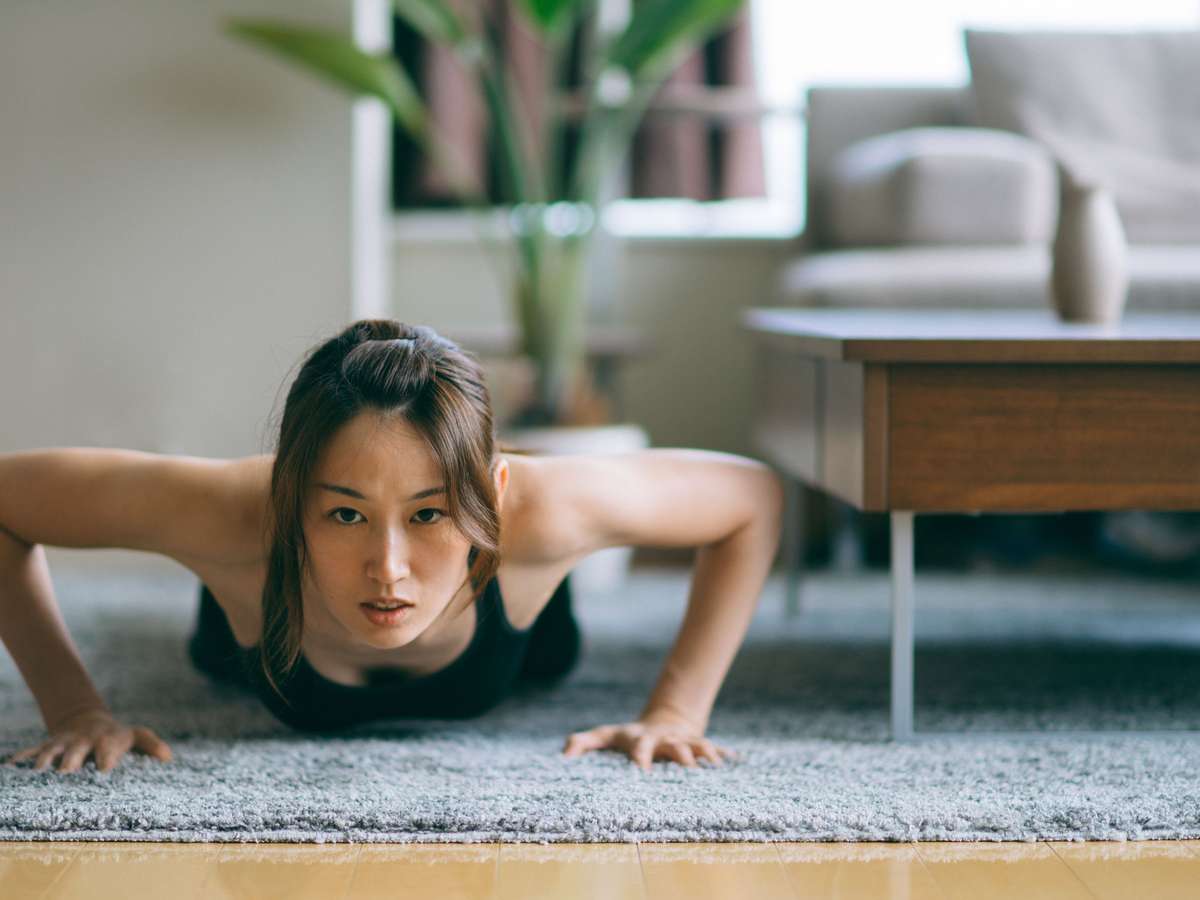 Se você não está acostumada a realizar esse tipo de movimento nos treinos, pode se beneficiar começando com a flexão. Veja como fazer: