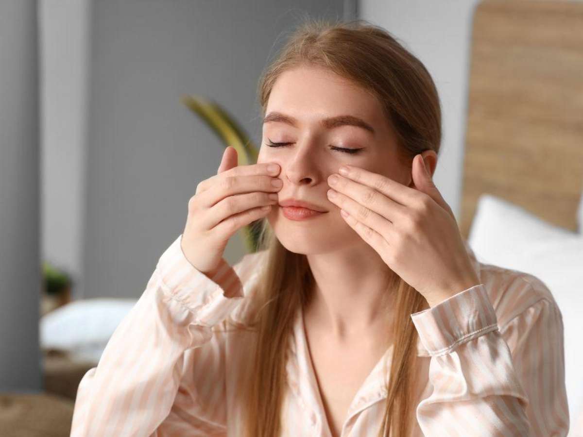 Massagear o rosto com as mãos mornas ajuda a drenar os líquidos acumulados. Isso diminui consideravelmente o inchaço matinal que tanto nos incomoda.