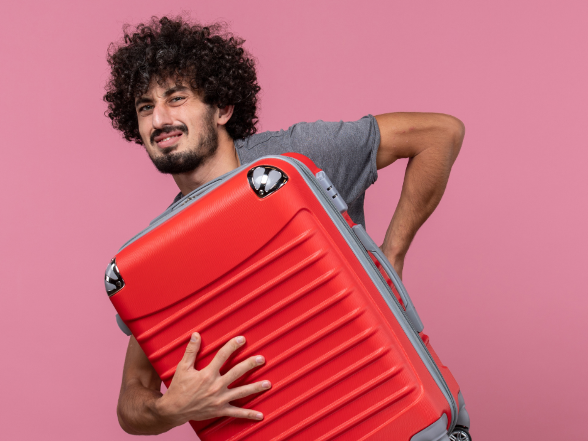 Na hora de lidar com malas, o ideal é usar modelos com rodas e levantar peso sempre com as pernas, nunca forçando a coluna.