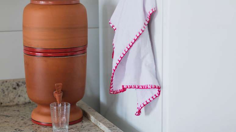 Internamente, o filtro também acumula parte dos minerais contidos na água, contribuindo para um sabor mais agradável. Diferente de outros aparelhos de filtragem, o barro é um material poroso que mantém a água gelada graças à evaporação natural.