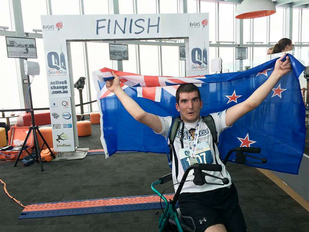 Jordon Milroy, 25 anos, já subiu mais de 4 mil degraus para arrecadar fundos e doar cadeiras de rodas à população de ilha no Pacífico