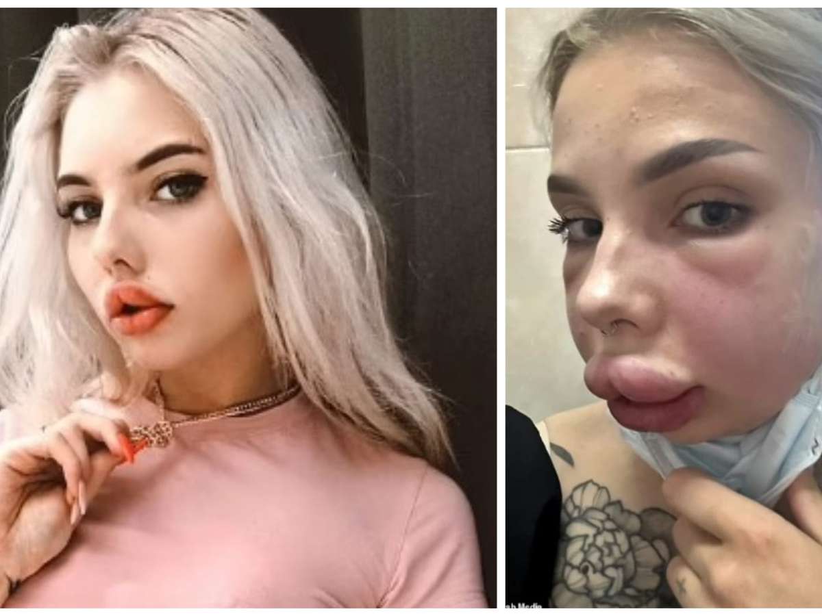 Expectativa: reduzir o tamanho dos lábios que a incomodava. Realidade: uma reação alérgica que fez os lábios passarem o dobro do tamanho.