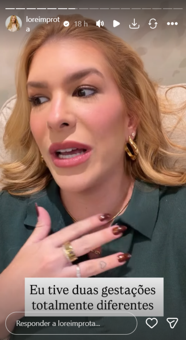 Lore Improta também comparou a gestação atual com a primeira, quando estava grávida de Liz, de quatro anos.