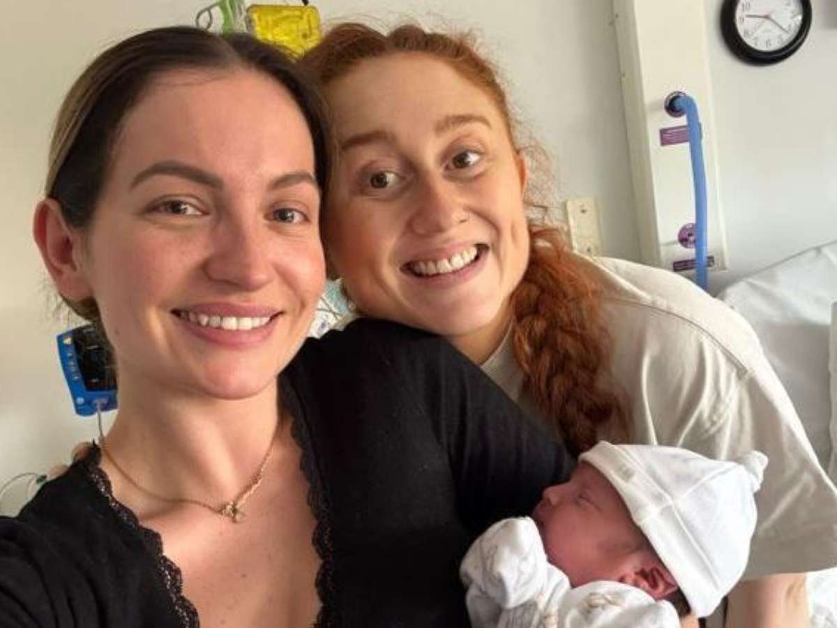 Este momento, na verdade, pertenceu à sua melhor amiga, Daisy Hope. Ela carregou o bebê para ela na gravidez, após uma promessa feita quando elas eram adolescentes.