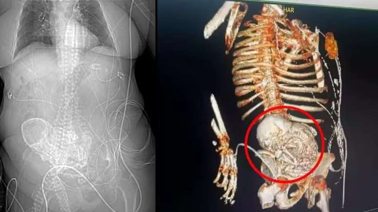 Os profissionais deduziram que se tratava de uma gravidez ectópica, quando acontece fora do útero, e que a mulher carregava o feto há mais de 50 anos