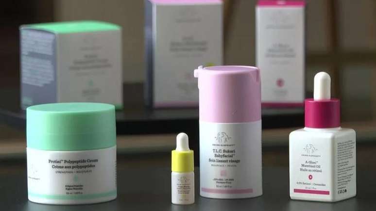 Mas muitos de seus produtos mais vendidos, que chegam a custar o equivalente a quase R$ 400 cada, contêm esfoliantes como ácidos alfa e beta hidroáxidos e retinol.