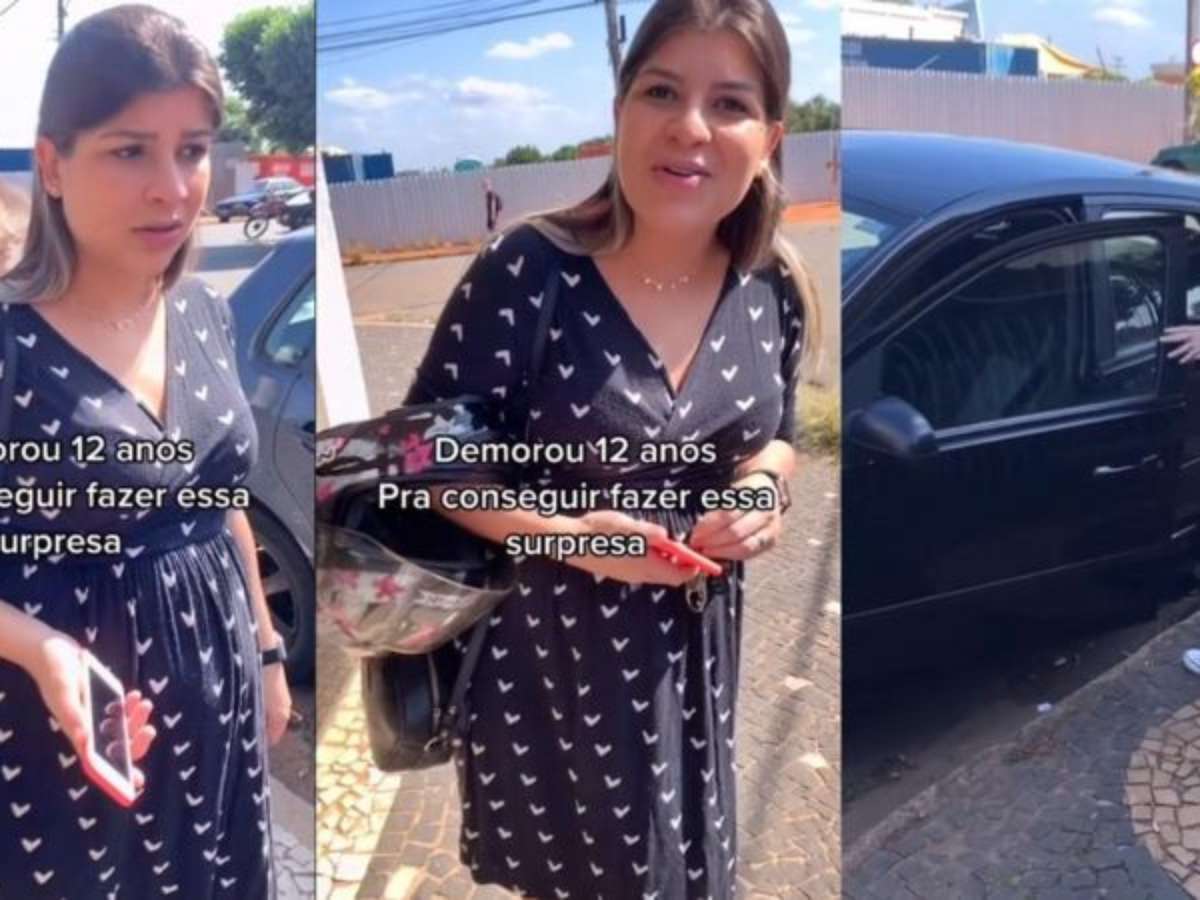 Quando pegou o carro, ele levou o veículo até a casa em que mora com a esposa e gravou a surpresa.