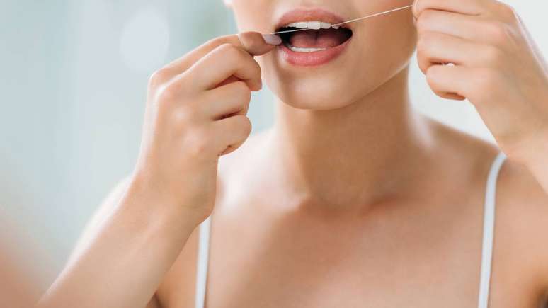 - Uso diário de fio dental ou recursos equivalentes para remover placa entre os dentes, região crítica para o desenvolvimento da periodontite.
