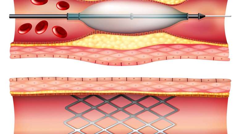 - Colocação de stent: geralmente se implanta um stent, estrutura metálica expansível que mantém a artéria aberta após a dilatação.