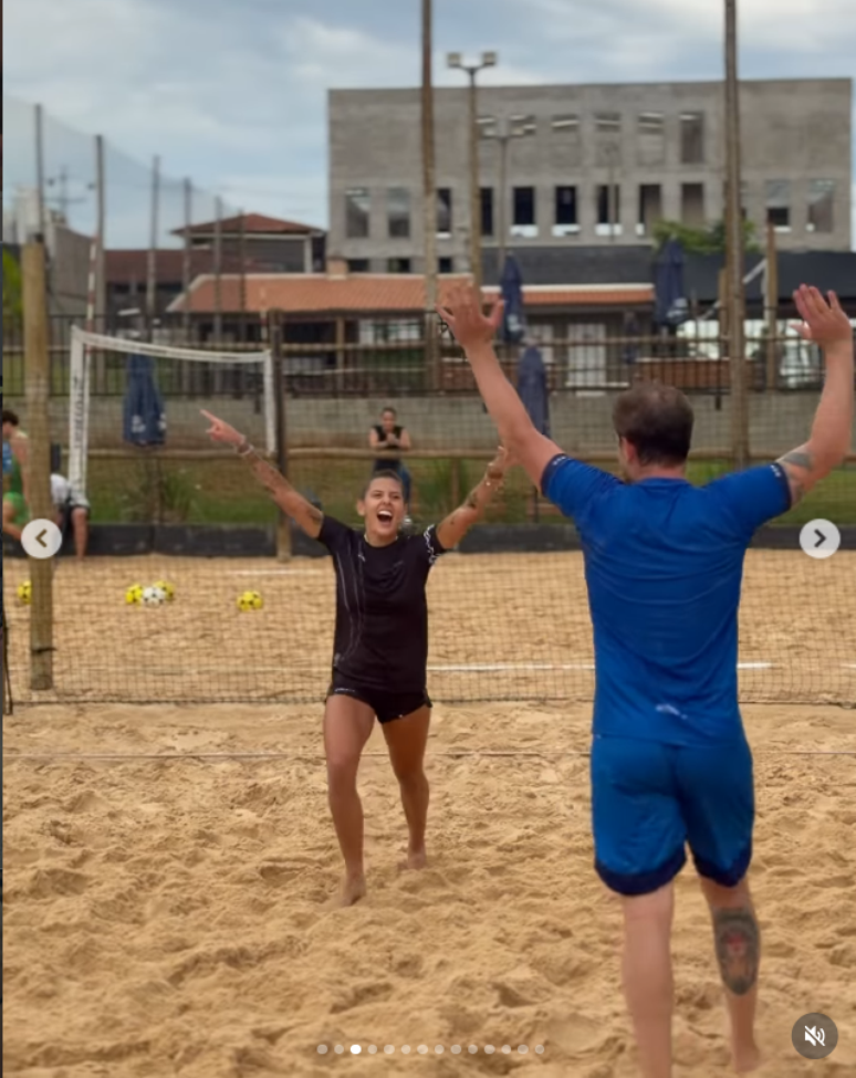 A rotina da Ana Castela é uma correria só, entre shows e gravações. Por isso, ela escolheu o futevôlei para manter o condicionamento físico.