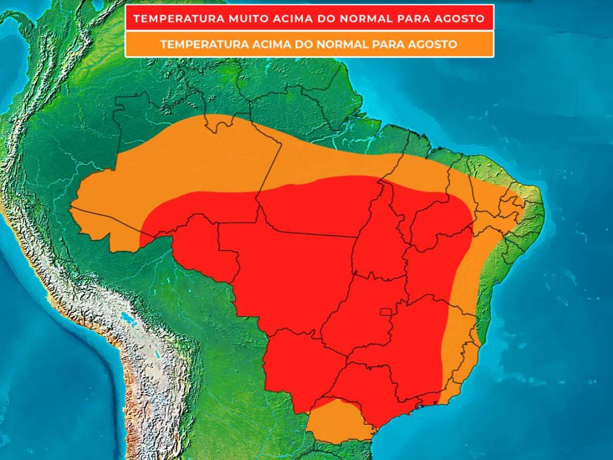 Embora seja um mês de inverno no Hemisfério Sul, o calor intenso é uma condição comum em agosto nos estados do Centro-Oeste, interior do Nordeste e centro-sul da Região Norte, em estados como Tocantins, Rondônia, Acre eo centro-sul e leste do Pará.
