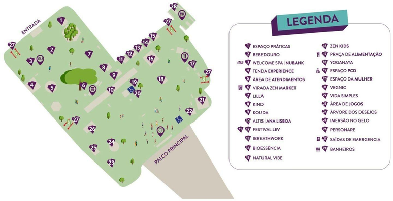 Nossa Tenda estará localizada próximo à Árvore dos Desejos (número 24 no mapa abaixo), entre o palco principal e o Zen Market.