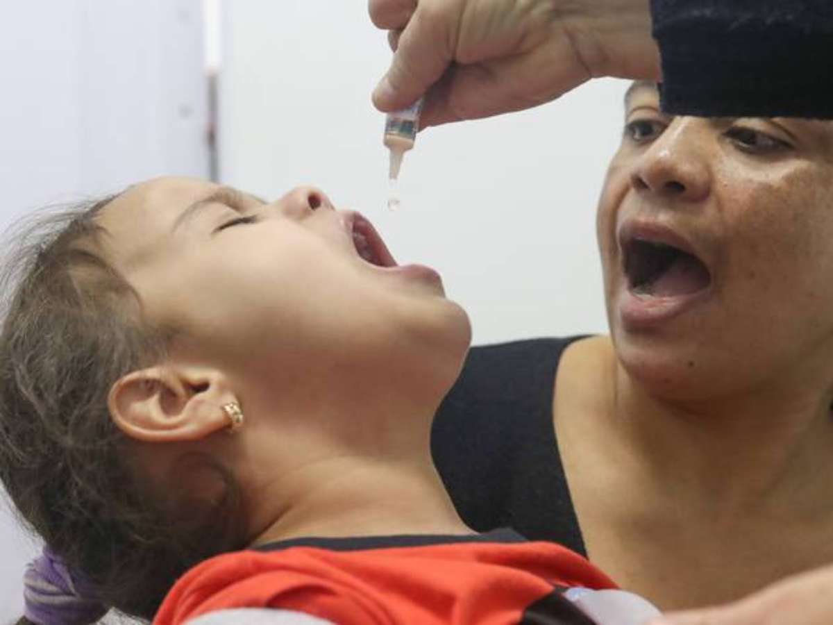 Durante a campanha, estão sendo administradas doses em crianças com vacinas em atraso. Cunha alerta, no entanto, que não podem receber gotinhas as crianças que não estão com as três doses da vacina inativada (injetável) em dia.