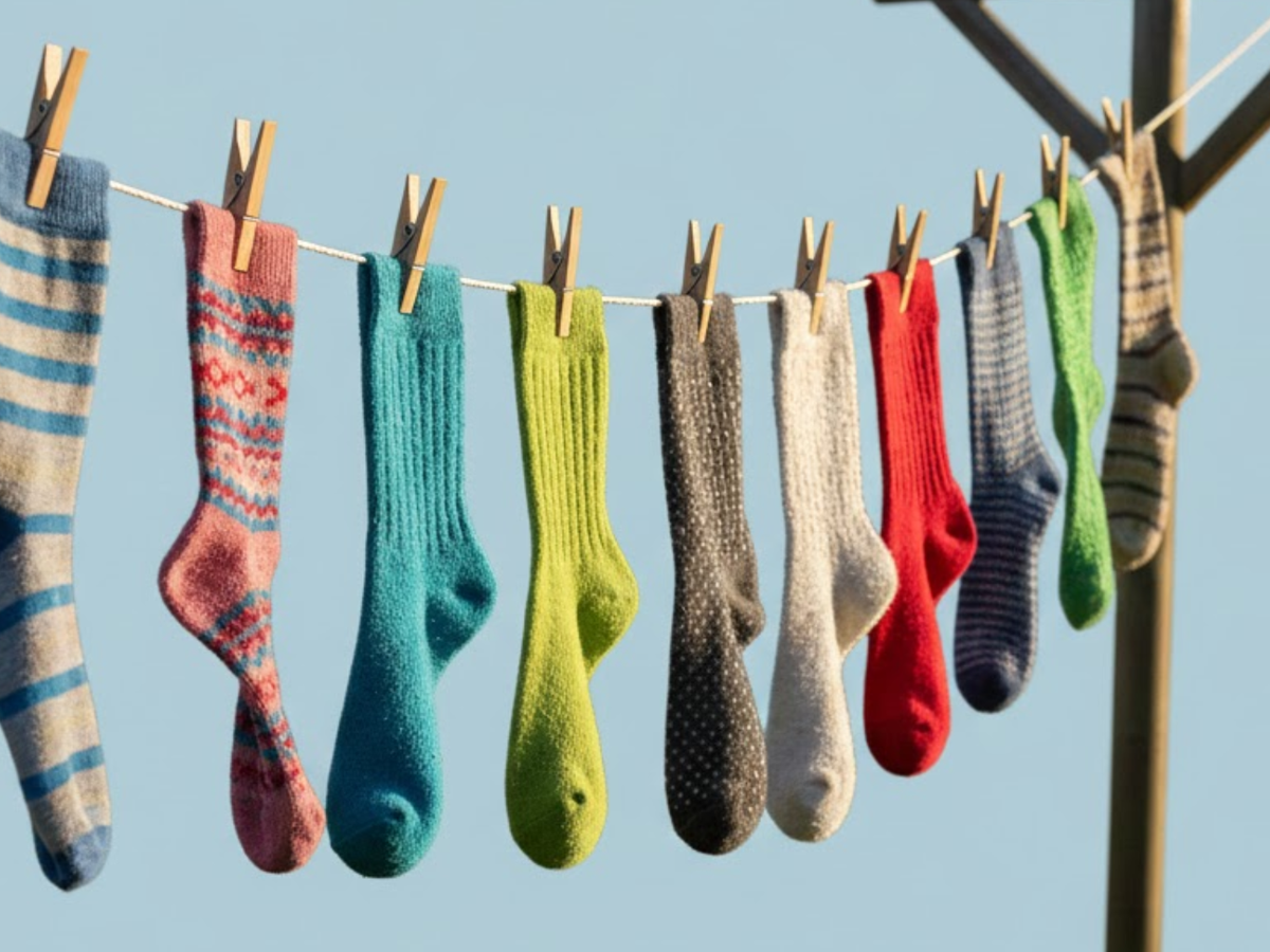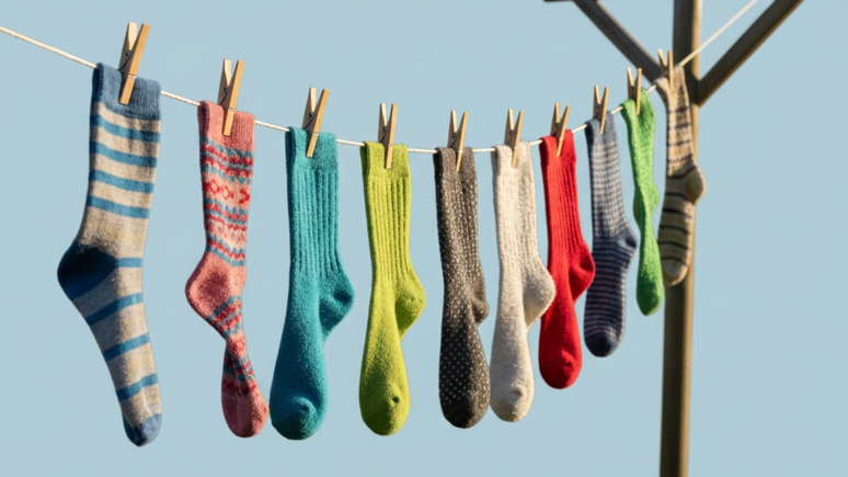 Secar as meias ao ar livre também é uma boa ideia, pois a radiação ultravioleta da luz solar é antimicrobiana para a maioria das bactérias e fungos das meias.