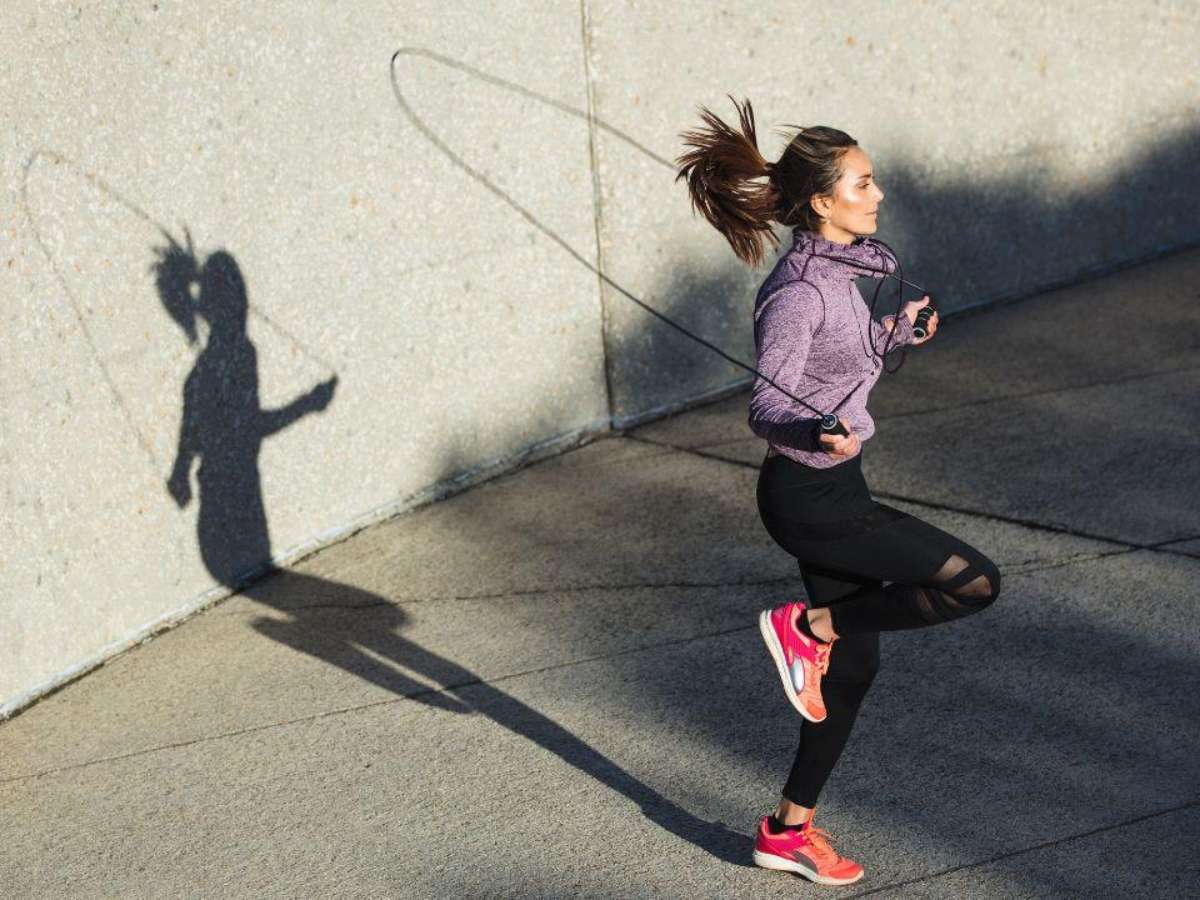 Ritmo variado: Alterne 1 minuto de salto em alta intensidade com 1 minuto de ritmo moderado.