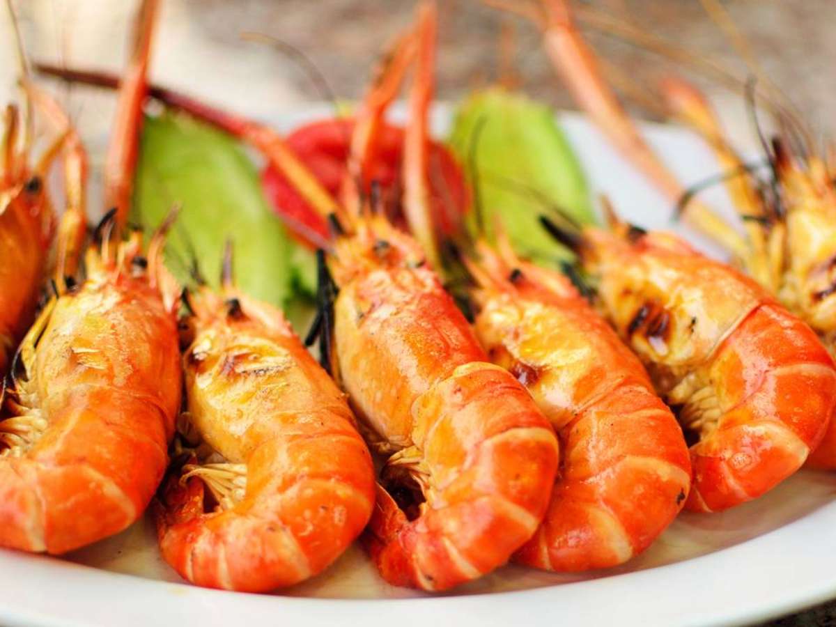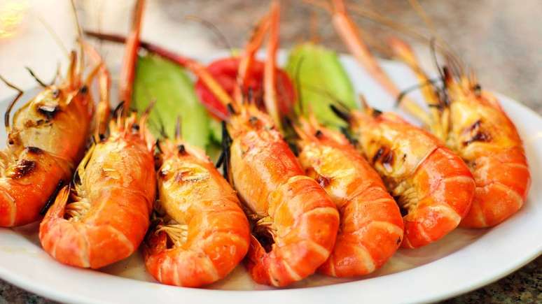 - Peixes e frutos do mar, incluindo camarão, lula e mariscos;