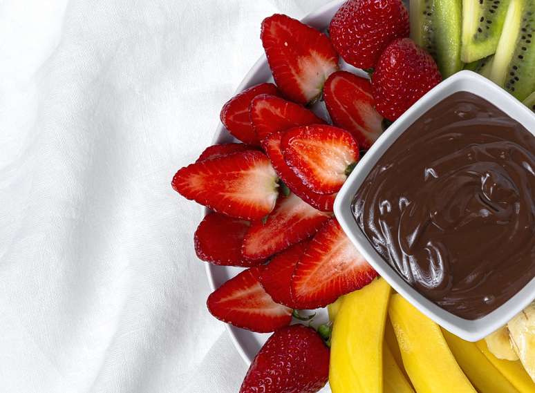 Veja, a seguir, como preparar um brownie de chocolate fit e uma taça de frutas com chocolate saudável.