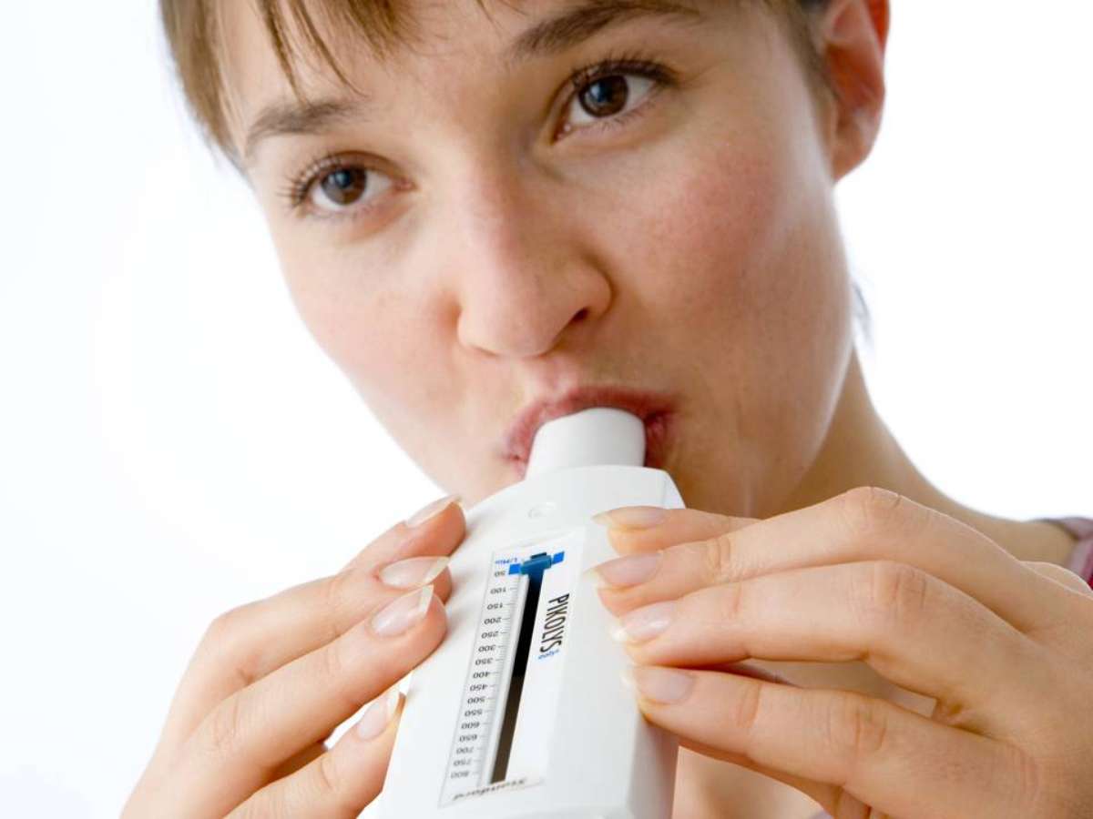 - Depois, respira pelo bocal do espirômetro, bem vedado com os lábios.