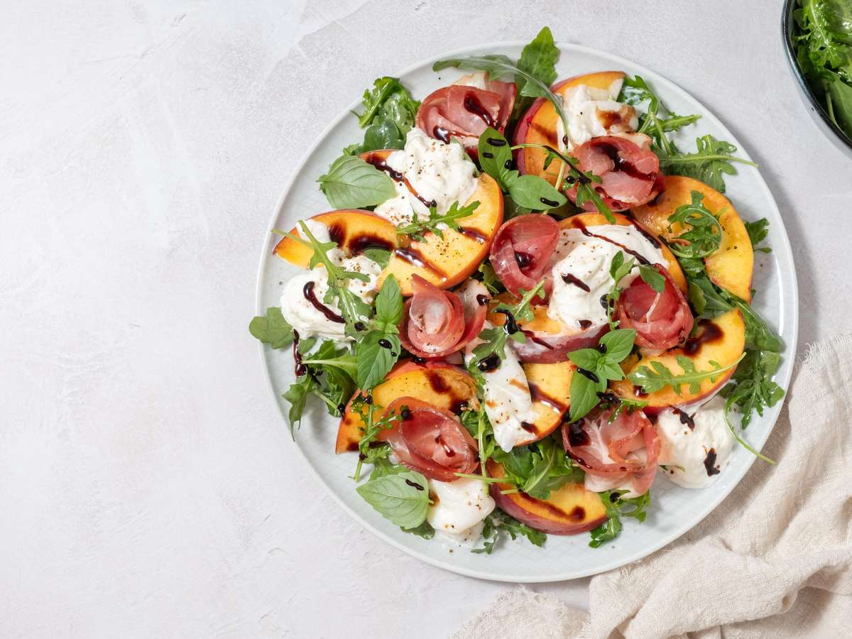 Salada de folhas com pêssego: receita refrescante para o Natal