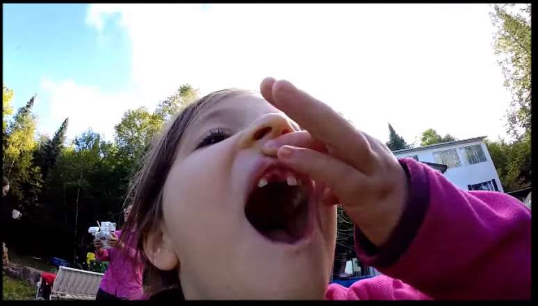 A técnica foi bem simples. O pai amarra um pedaço de fio dental no dente que está prestes a cair e a outra ponta vai no drone, um pequeno avião controlado remotamente. Ao levantar voo, o robozinho leva o dente junto em um piscar de olhos. Depois disso, a menina pega o dente e há muita gritaria para comemorar. A mãe ainda comenta que consegue ver o dentinho que está para nascer e pergunta se a menina está feliz.