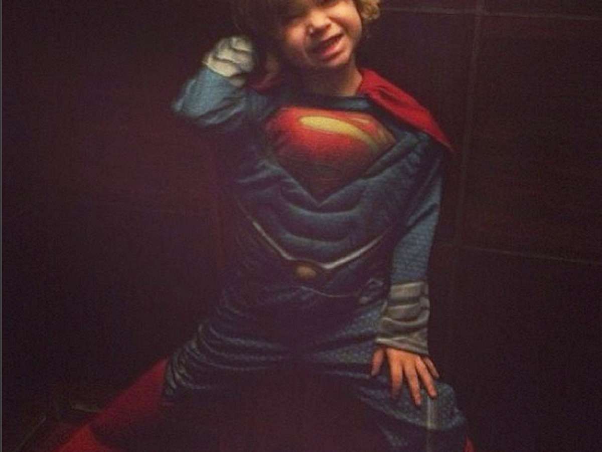 Adriane Galisteu é mãe de Vittorio, de 3 anos. Na legenda da foto, a apresentadora postou: To na boa to segura... Tenho um super homem em casa!!!