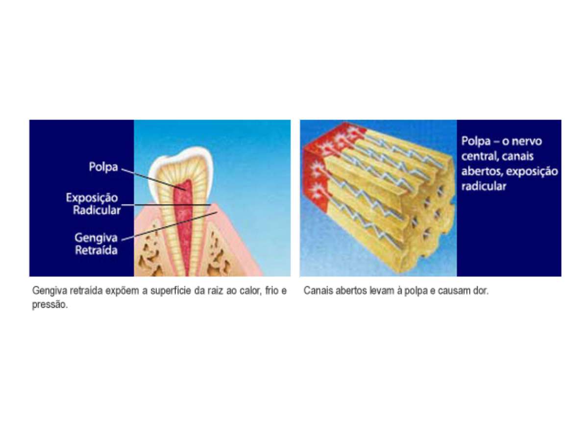 A sensibilidade dentária é a dor causada por desgaste da superfície do dente. A causa mais comum desta sensibilidade na pessoa adulta é a exposição da raiz dos dentes na área cervical, ou colo, devido à retração gengival. Como a raiz não está coberta pelo esmalte, milhares de canalículos que vão do centro do dente e levam o feixe nervoso da polpa até a superfície ficam expostos e acusam a dor. Quando o calor, frio ou pressão afeta esses canalículos, você sente dor. Ignorar os dentes sensíveis pode levar a outros problemas de saúde bucal. Especialmente se a dor fizer com que você não escove bem seus dentes, tornando-os vulneráveis às cáries e doenças gengivais.