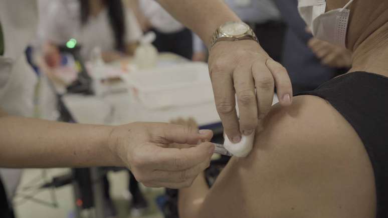 A aposentada Marlene Negrão, 70 anos, estava sentada desde cedo na porta da EMEF Professora Maria Celina Walter de Assis, uma das oito escolas em que ocorre a vacinação e onde foi a cerimônia de abertura. Os quatro filhos estavam juntos na fila para serem vacinados, dois já tiveram covid.