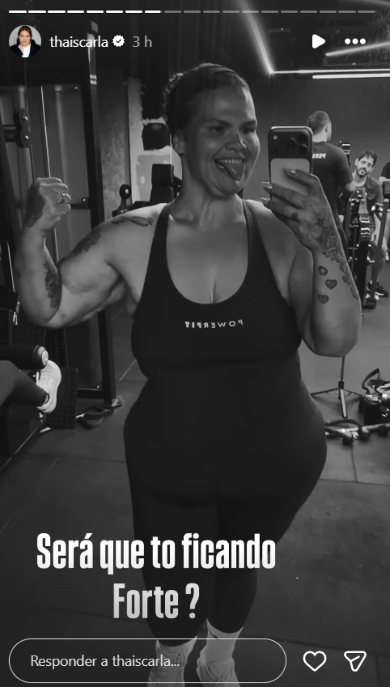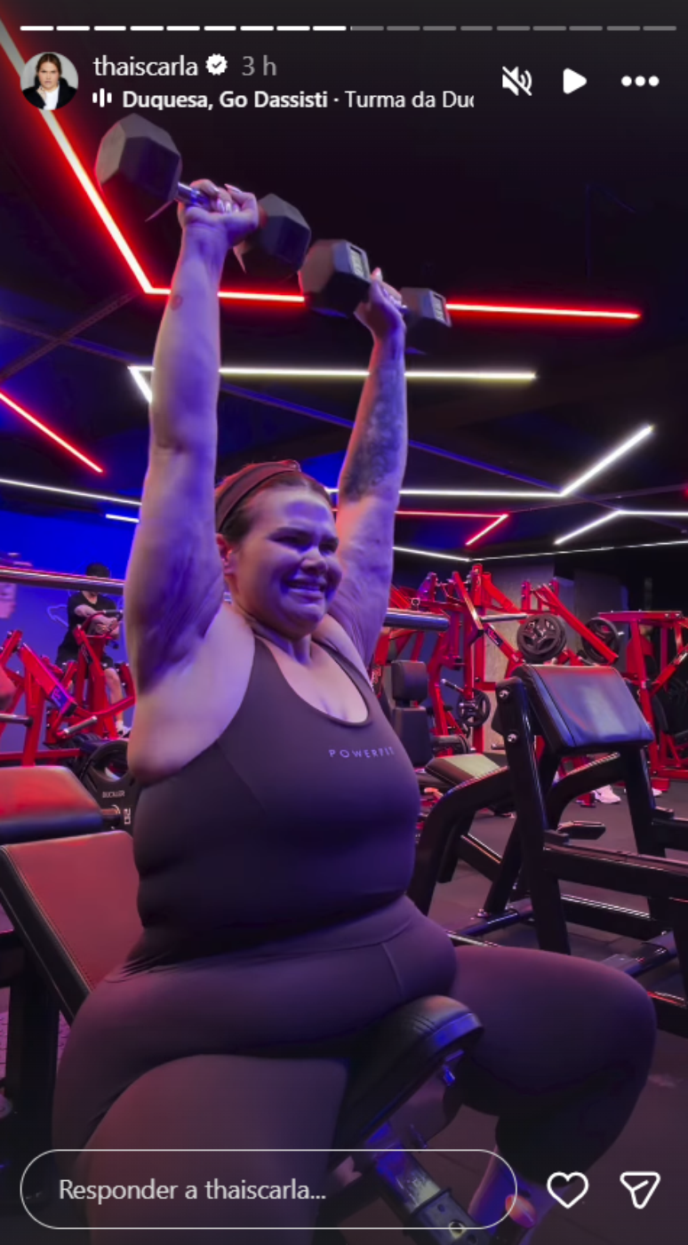 Nos registros mais recentes, Thais aparece treinando membros superiores e exibindo os músculos do braço. A artista perdeu cerca de 85 kg e tem compartilhado com seguidores sua nova rotina de exercícios e cuidados com a saúde.