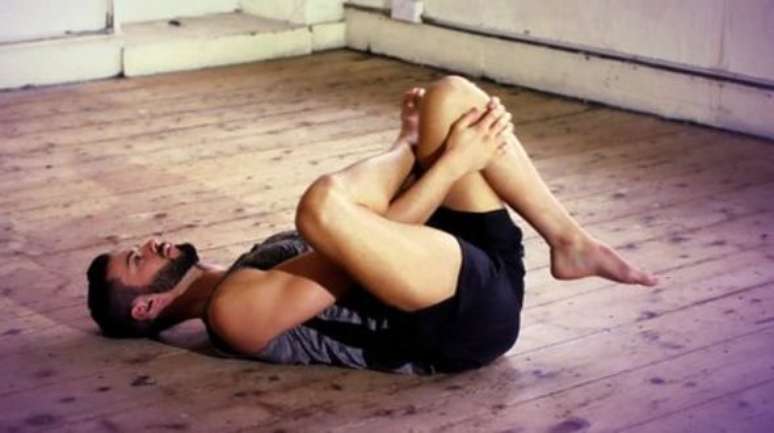 Repita esse movimento todos os dias e você vai notar avanços a cada vez até conseguir chegar aos dedos dos pés.