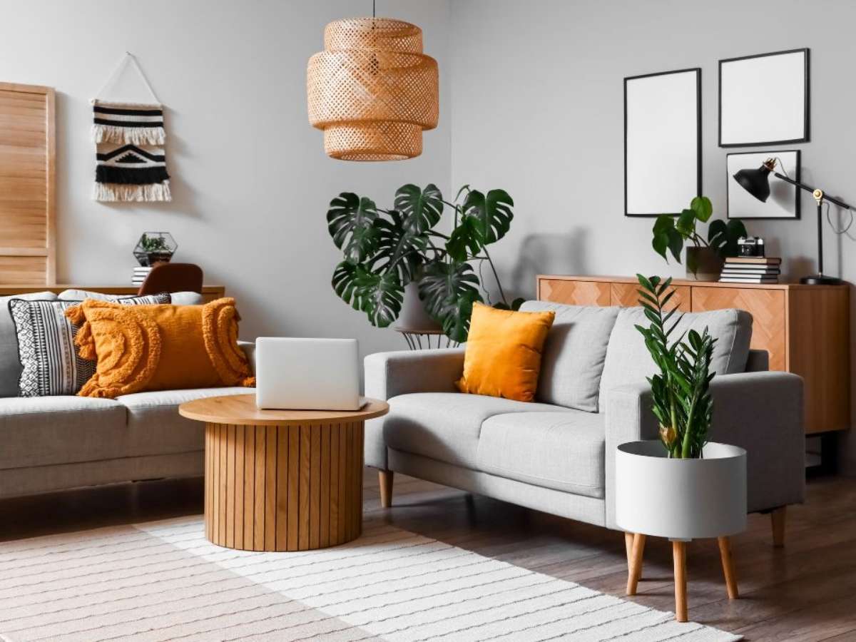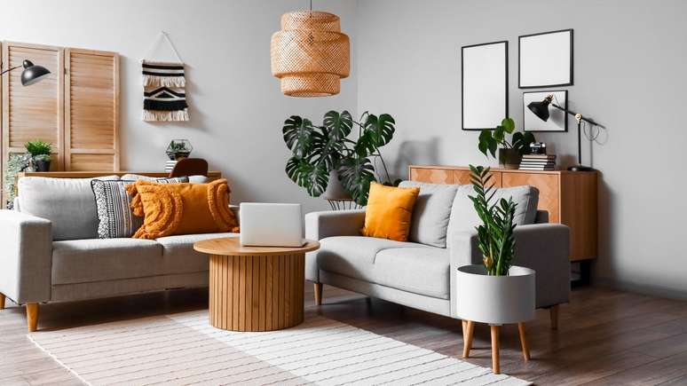 Uma outra dica para uma decoração tropical é usar materiais naturais, como madeira, bambu, ratan e vime nos móveis. Isso cria uma atmosfera acolhedora e equilibrada, sem contar que melhora o conforto térmico.