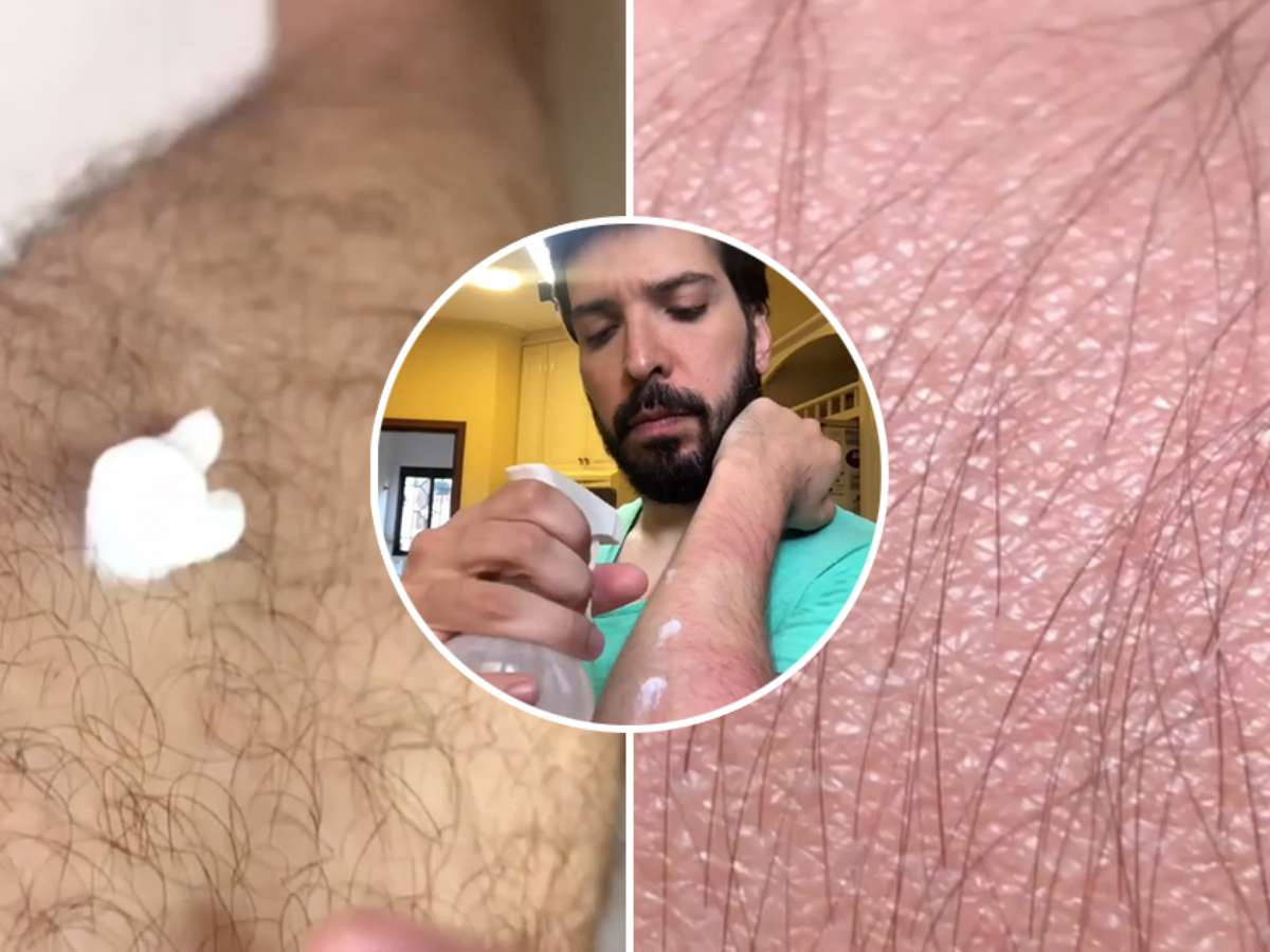 Por fim, é só fechar o borrifador, dar uma boa chacoalhada e borrifar a mistura na pele! A água ajuda a suavizar (e muito!) o processo, assim, os pelos não atrapalham na hora de passar o cosmético na pele. Raspar os pelos, nunca mais!