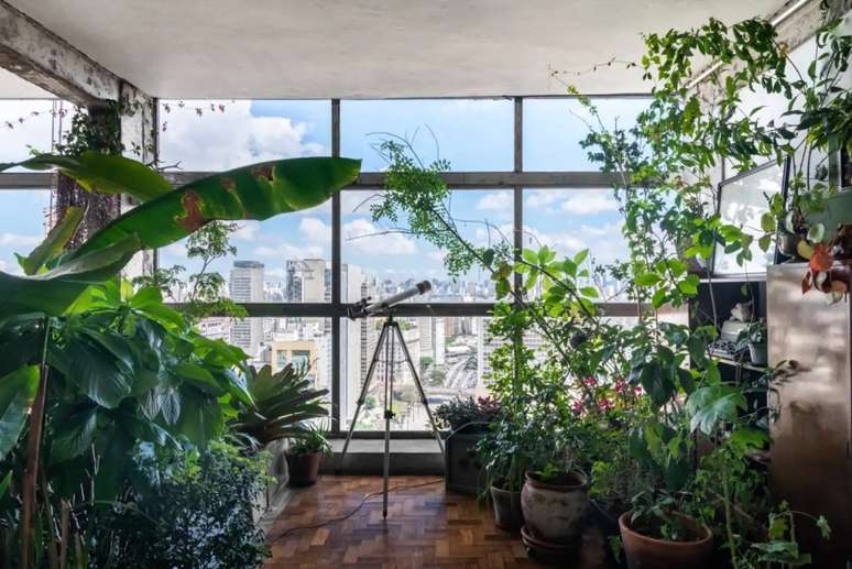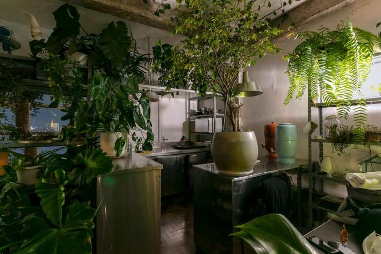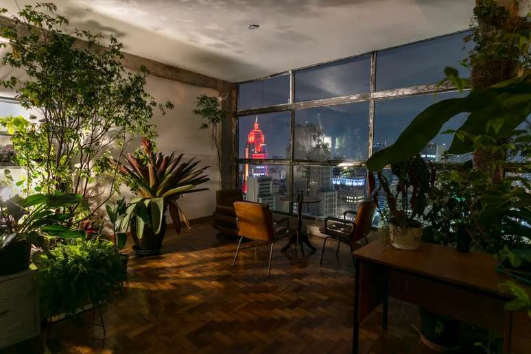 O apartamento de 70m² é, digamos, uma experiência imersiva: a sensação é a de estar em um local que foi "engolido" pela natureza, tamanha a quantidade e variedade de plantas da Mata Atlântica que surgem para todos os lados e estão nos cantos mais inusitados, como atrás do vaso sanitário ou entre as teclas de uma máquina de escrever vintage. Utilizado também como espaço para eventos e cenário para ensaios fotográficos, o apartamento não possui muitos móveis. Além da cama, há duas pequenas mesas, algumas cadeiras, poltronas e uma cozinha industrial, toda de inox. Há dois janelões que emolduram lindamente o Farol Santander. Reserve aqui.