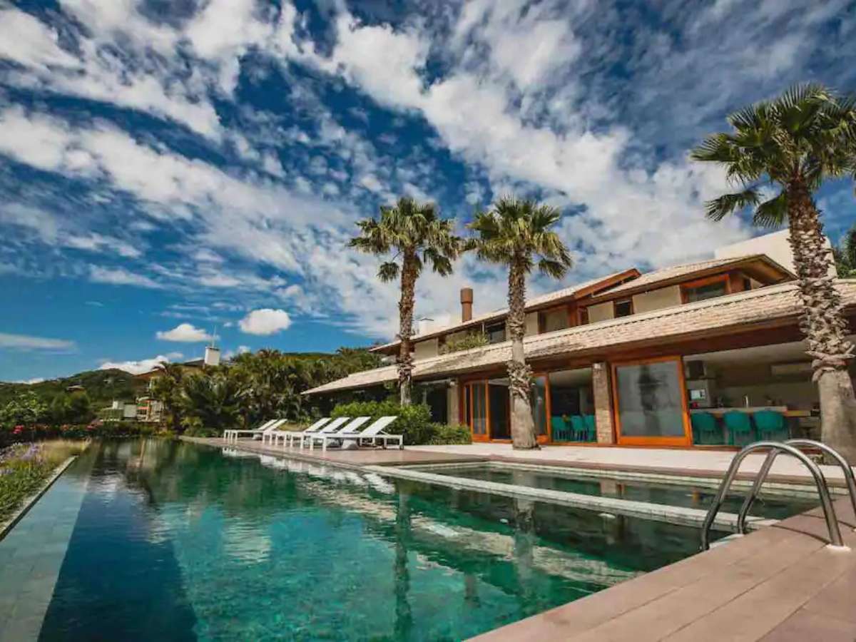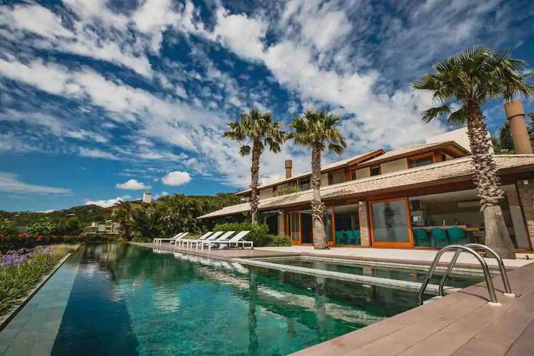 Uma casa com mais de mil metros quadrados, de frente para o mar, localizada em uma das praias mais bonitas de Santa Catarina. A acomodação tem piso aquecido, piscina aquecida com raia semi-olímpica (de 25 metros), jacuzzi e um sistema de som integrado com caixas por toda casa. Ainda há um acesso exclusivo para a praia do Silveira e também um amplo jardim com horta. O valor da diária inclui o serviço de camareira e cozinheiro. Hospeda até 16 adultos em seis suítes. Reserve aqui.