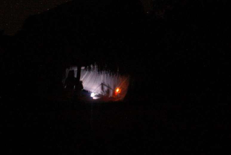 Os visitantes já estão deitados sobre colchões finos e, a essa hora, as crianças já devem ter apagado as velas.
