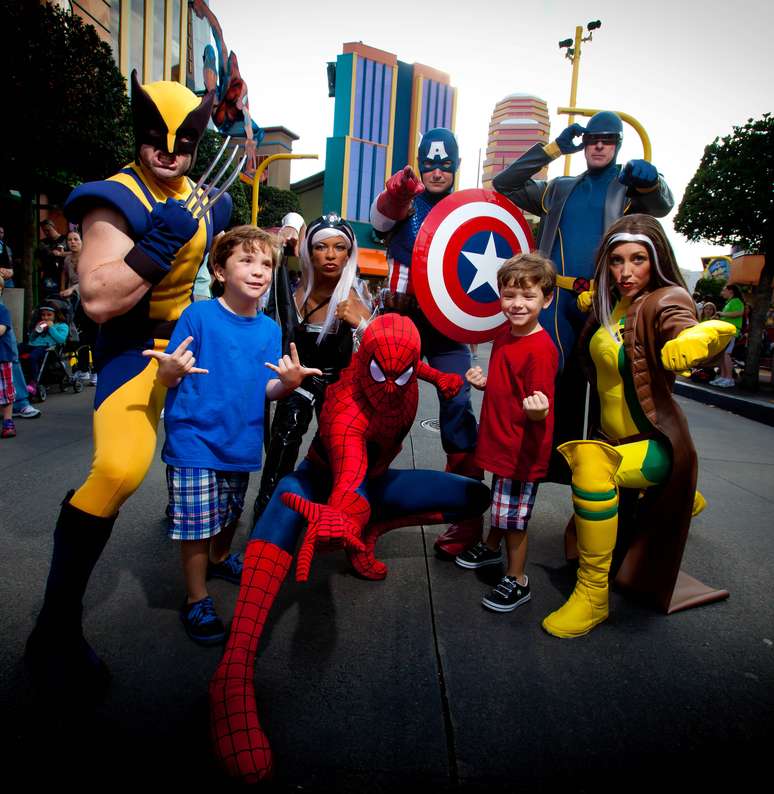 Nem todos os personagens dos quadrinhos circulam por ali por uma questão de direitos autorais. A Marvel Entertainment foi comprada pela Disney em 2009. Assim, a Universal só pode usar alguns dos super-heróis que foram adaptados para as telas antes disso, como Homem-Aranha, Capitão América, X-Men e Quarteto Fantástico.