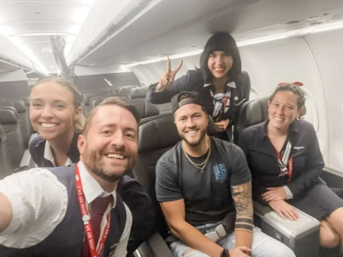 Americano teve passagem promovida para primeira classe e se divertiu com os tripulantes