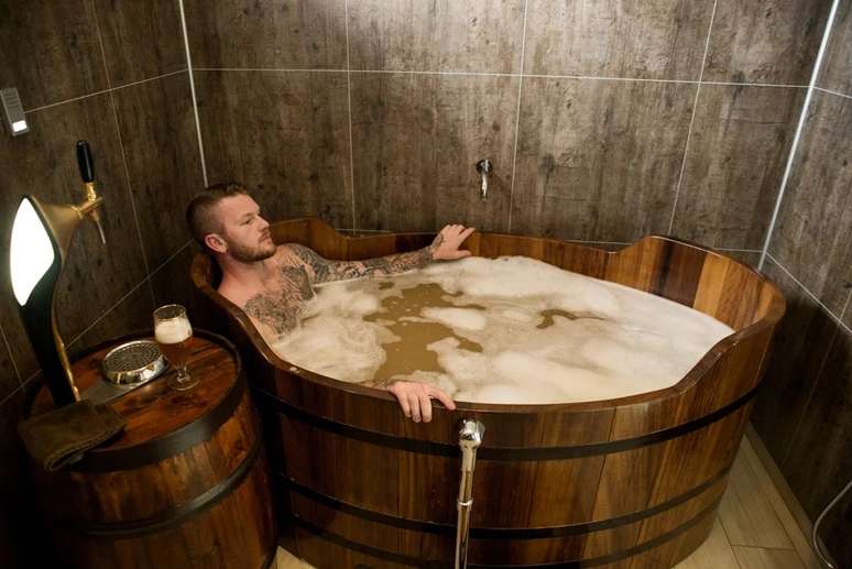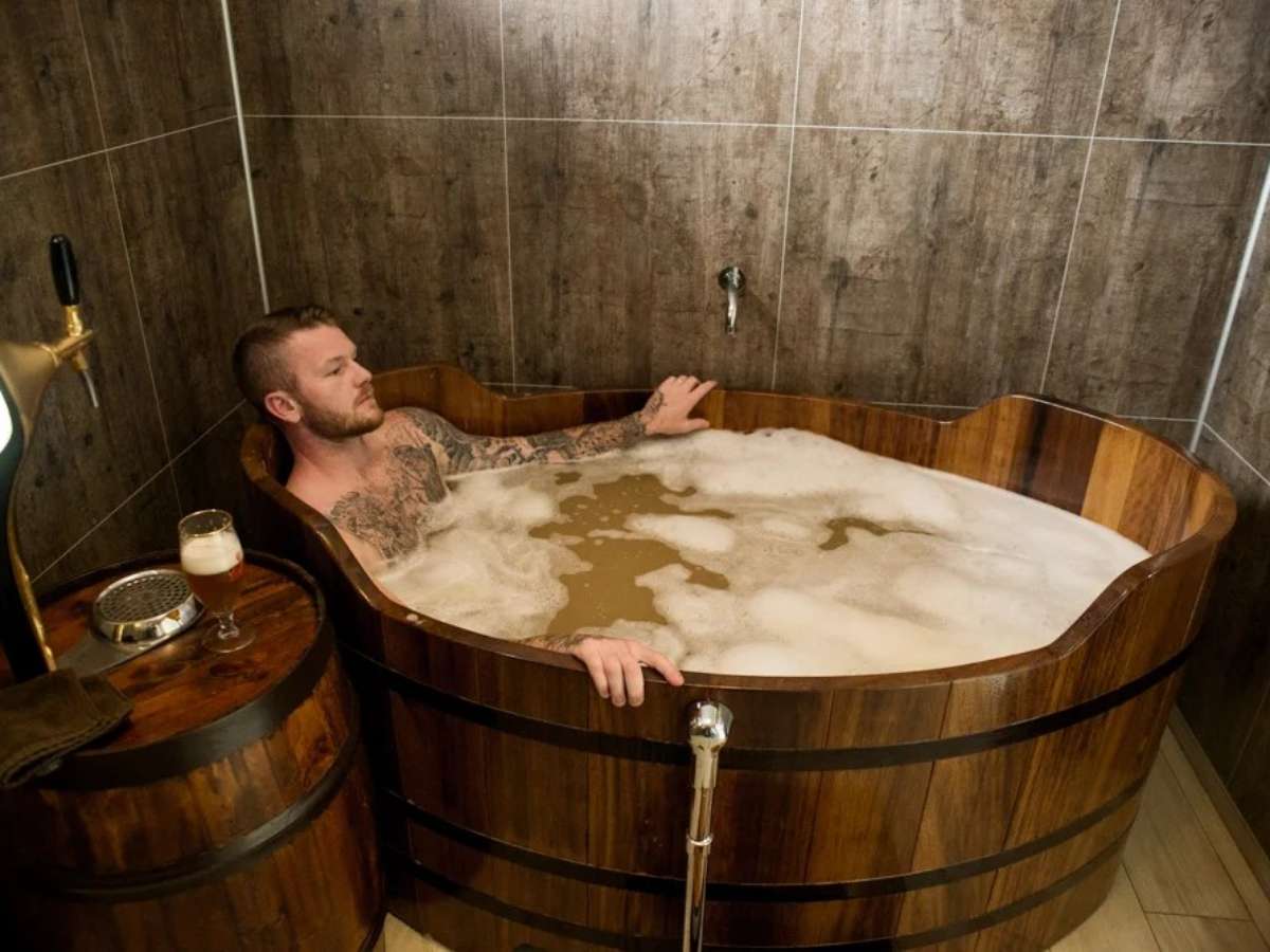 Poderia ser mais um daqueles tratamentos energizantes em um Spa qualquer. Mas as banheiras de madeira são enchidas com lúpulo, fermento, água quente e… cerveja.
