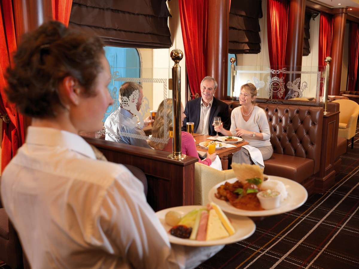 Golden Lion – Entre os pubs em navios um dos mais autênticos é o Golden Lion, da Cunard Line. O espaço já foi apontado por revistas especializadas como o mais próximo dos pubs ingleses por levar esse espírito para dentro dos navios da empresa britânica. É um ambiente que oferece cervejas e também os lanches típicos, como salsicha com purê e peixe com batatas.