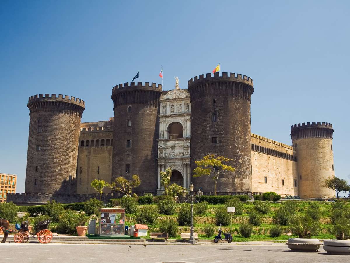 Palácio Real de Capodimonte - Outro grande palácio de Nápoles, o Palácio Real de Capodimonte, foi desenhado para o rei Carlos de Bourbon, para servir de residência de verão aos soberanos das Duas Sicílias. Atualmente, o palácio abriga uma galeria e um museu de arte, com obras de Giovanni Bellini, Sandro Botticelli, Caravaggio, Annibale Carracci, José de Ribera, Artemisia Gentileschi, Francisco Goya, Simone Martini e Masaccio, Tiziano. A construção do palácio iniciou em 1738 e levou cerca de um século para ser concluída