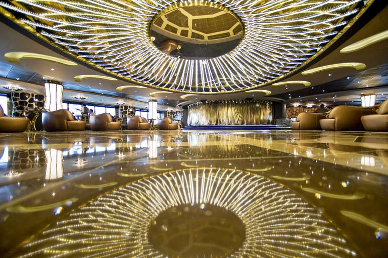 4 - Safari Lounge - Outra danceteria do MSC Preziosa é o Safari Lounge. Com muito espaço, o ambiente tem tapete com estampa de leopardo e uma pista de dança que imita um casco de tartaruga.