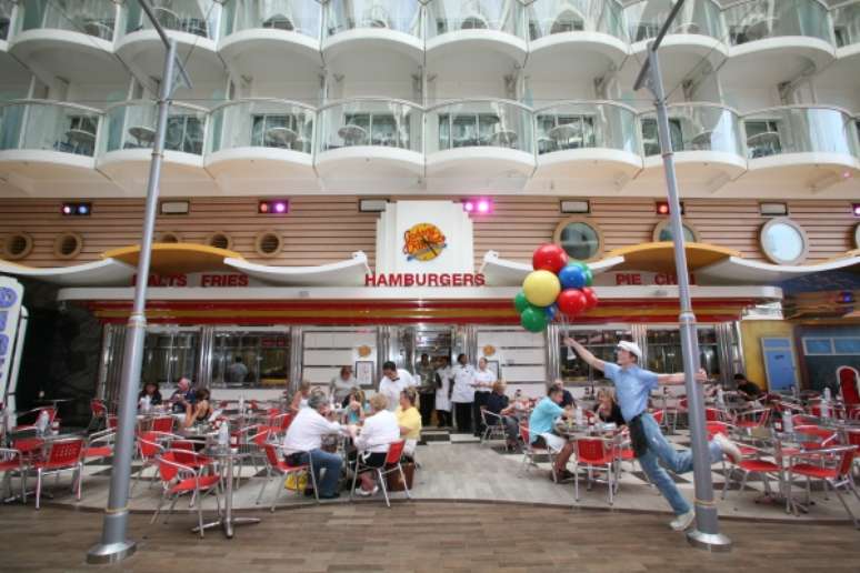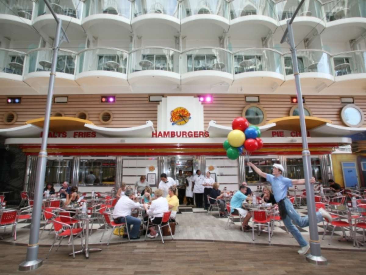 Johnny Rockets - A hamburgueria Johnny Rockets, que pode ser encontrada nos navios das classes Oasis, Freedom, Voyager e no Majesty of the Seas, da Royal Caribbean International, oferece hambúrgueres à moda antiga, em ambiente inspirado nos anos 1950, com juckebox e tudo mais, além de cardápio com especialidades norte-americanas. Um dos destaques do menu são as batatas fritas cobertas com chili, queijo e cebola